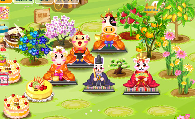 野菜とかを育てるミクシのPCアプリで、季節イベントのおひなさまが出たので並べてみましたv