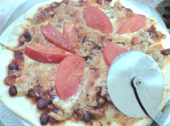 ピザソースを作るの面倒だったので、ちょうど先日買っていたタコス用のチリソースを代用。
