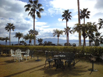 富士山のような形をした開聞岳も、雲の中から少しみえました。が、上部半分くらい白く雪が付いていました。積もったというよりも木々に雪が付いているように見えました。