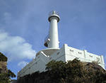 風が強いので雲の流れが速く、晴れ間に見えた灯台。開聞岳の写真と数分しか違わないのにこの空の違いがすごいです~。