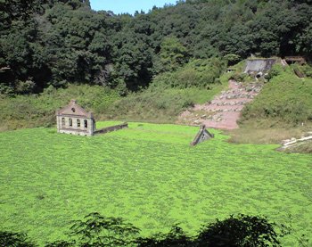 今はもっと下流に大きなダムが出来たため、水没していて夏場水が少なくなるともっと建物が見えるそうです。