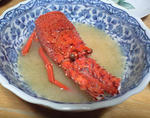 画像は、造る前の鯛と伊勢エビと、味噌汁のお風呂でのぼせちゃった海老さんですv