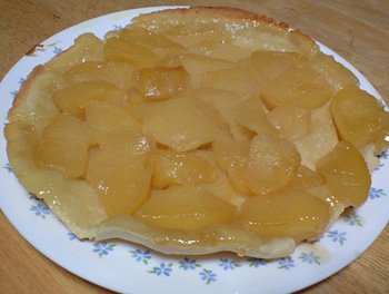 が~、卵が無かったのでケーキ類はボツということで、タルトタタンもどきを作成しました~。もう少し焼き色ついたほうが良かったな。
