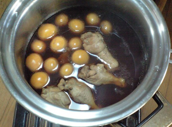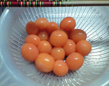 下にあります画像は、生の状態と、鶏と煮たあとのきんかんです。ゆで卵の黄色してるでしょv