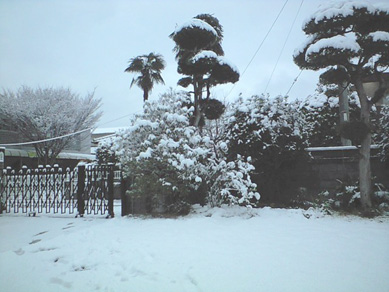 玄関までの部分だけ竹ボウキで雪かきしたので、そこだけ消えてますv