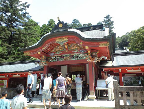 火災などで消失した本殿などは250年ほど前に再建されたそうで、西の東照宮と呼ばれることもあるとか。お参りをする勅使殿という所は豪華な彫刻なども鮮やかでした。