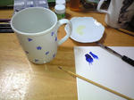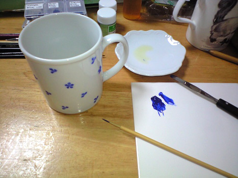 明日皿ペイントの教室なので、宿題だった小花のマグをやっとこ描き描き。
